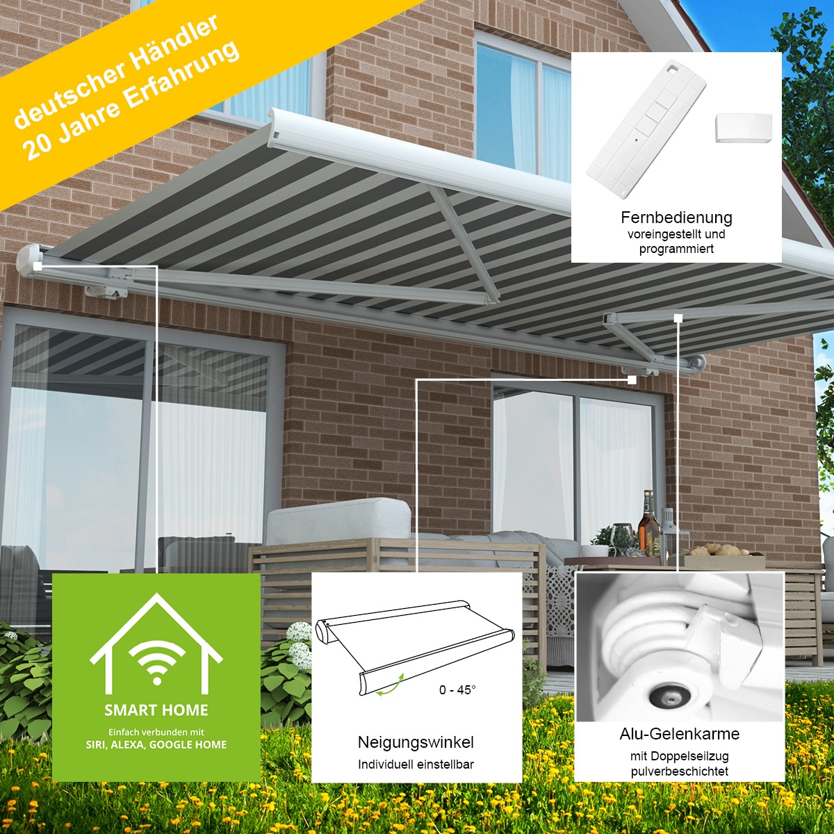 Wandhalterungen sind aus Aluminium, mit gleichfarbigem, zur Markise
